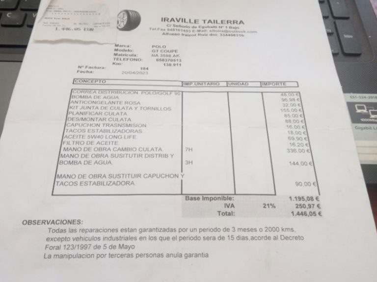 Vehículo sin especulación!!!! No queremos obtener beneficio con este vehículo!!! Tan solo recuperar el dinero de las facturas. Te mostramos las facturas en el anuncio para que veas que el precio del vehículo solo es el importe de las facturas. Además le hemos hecho mejoras como el vaso de expansión,cambio de valvulina etc... Aceptamos tú vehículo cómo forma de pago posibilidad de entrega a domicilio disponemos de vehículos similares atención telefónica de lunes a domingo.